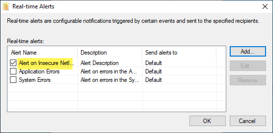 After clicking OK here, you will see your Real-time Alerts displayed with the new alert you just added with a check, showing it is enabled.