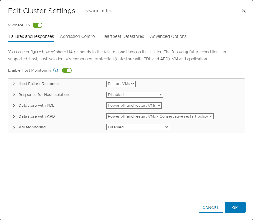Within the vSphere cluster, shared resources and vSphere High Availability allow failed workloads to recover on a healthy ESXi host. With vSphere 6.5, VMware introduced a proactive HA that takes this a step further with proactive health checks that monitor host hardware. If an issue is detected, VMs are vMotioned from the unhealthy host before workloads are affected by a host failure.
