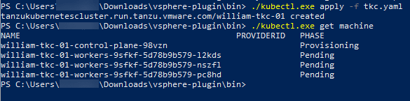 ./kubectl.exe vsphere login --server=192.168.5.176 -u [email protected] --insecure-skip-tls-verify --tanzu-kubernetes-cluster-name william-tkc-01 --tanzu-kubernetes-cluster-namespace cloudlocal-k8s