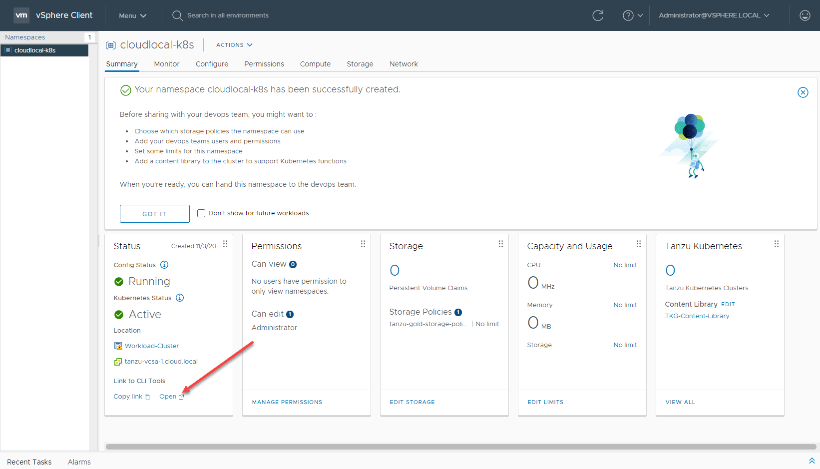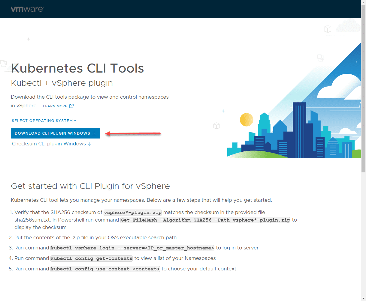 Now that we have the permissions and the storage policy configured, open the link to grab a copy of the Kubernetes CLI tools.