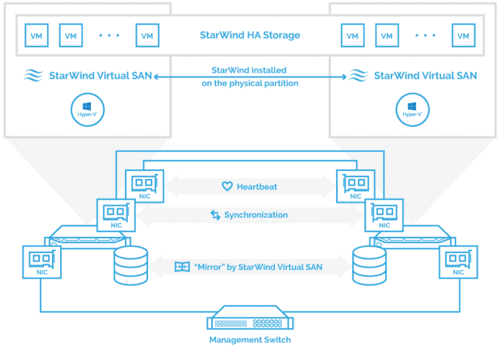 StarWind’s Virtual SAN (VSAN) provides a powerful solution for software-defined storage and eliminates the need for physical Storage Area Network (SAN) devices connected to your physical servers. Instead, using StarWind VSAN, you can mirror internal hard disks and flash between your hypervisor hosts to create a “logical” shared storage between your servers, so the storage is seen similarly as simple shared storage between them.