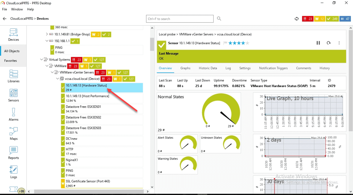 PRTG VMware Host Hardware Status Monitor with SNMP