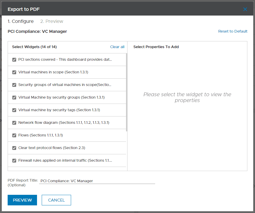 Hugely beneficial also is that the vRealize Network Insight assessment dashboards allow you to easily export the findings and outputs to a PDF, which can be used, in the case of PCI, as documentation for auditors and other business stakeholders.