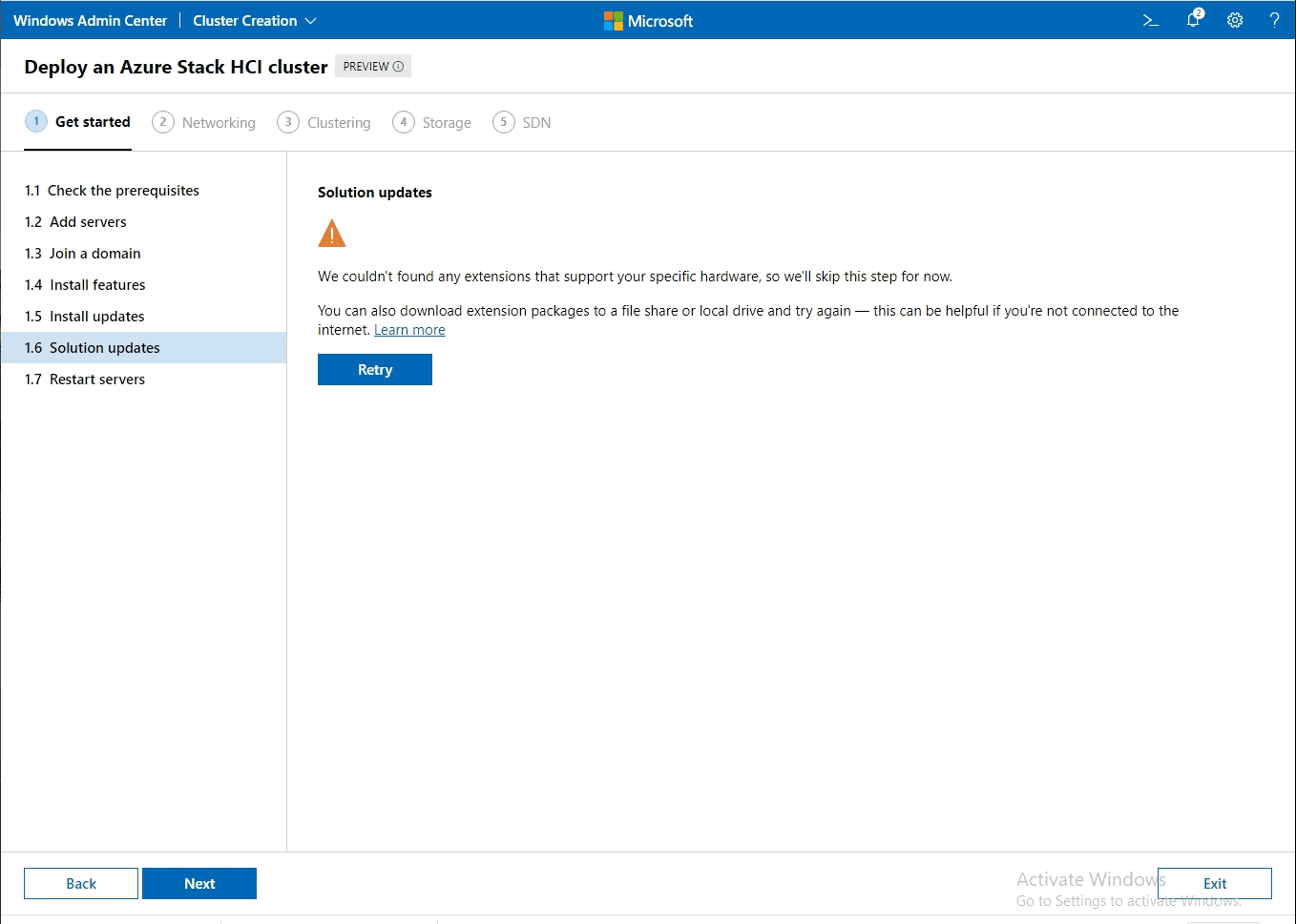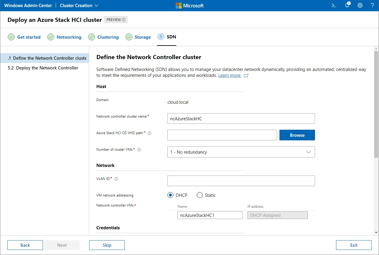 The next section is SDN. It is not required to configure SDN, however, it is part of the Deploy an Azure Stack HCI cluster.