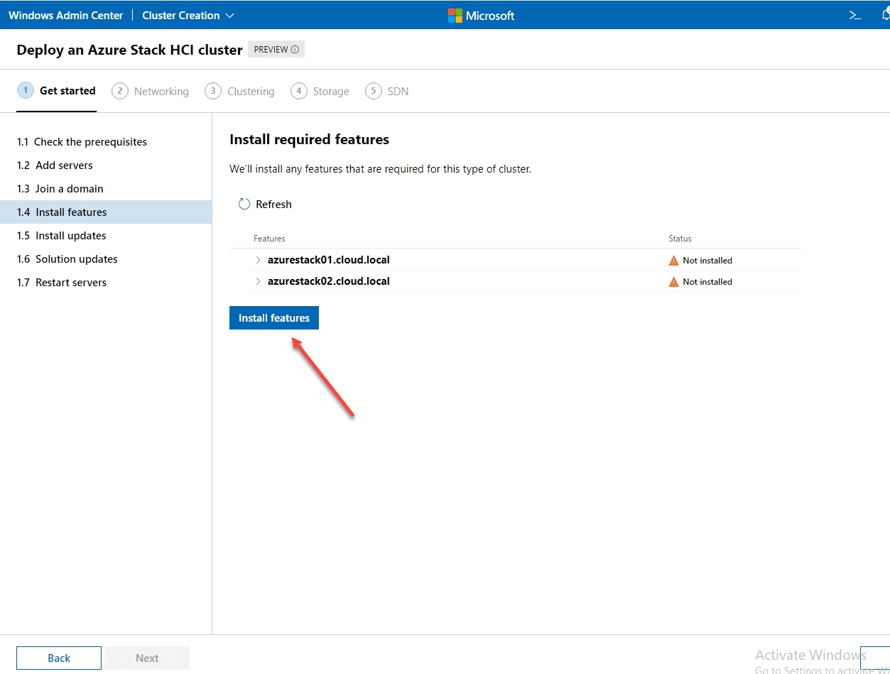The wizard will automatically install features needed on both prospective Azure Stack HCI hosts.