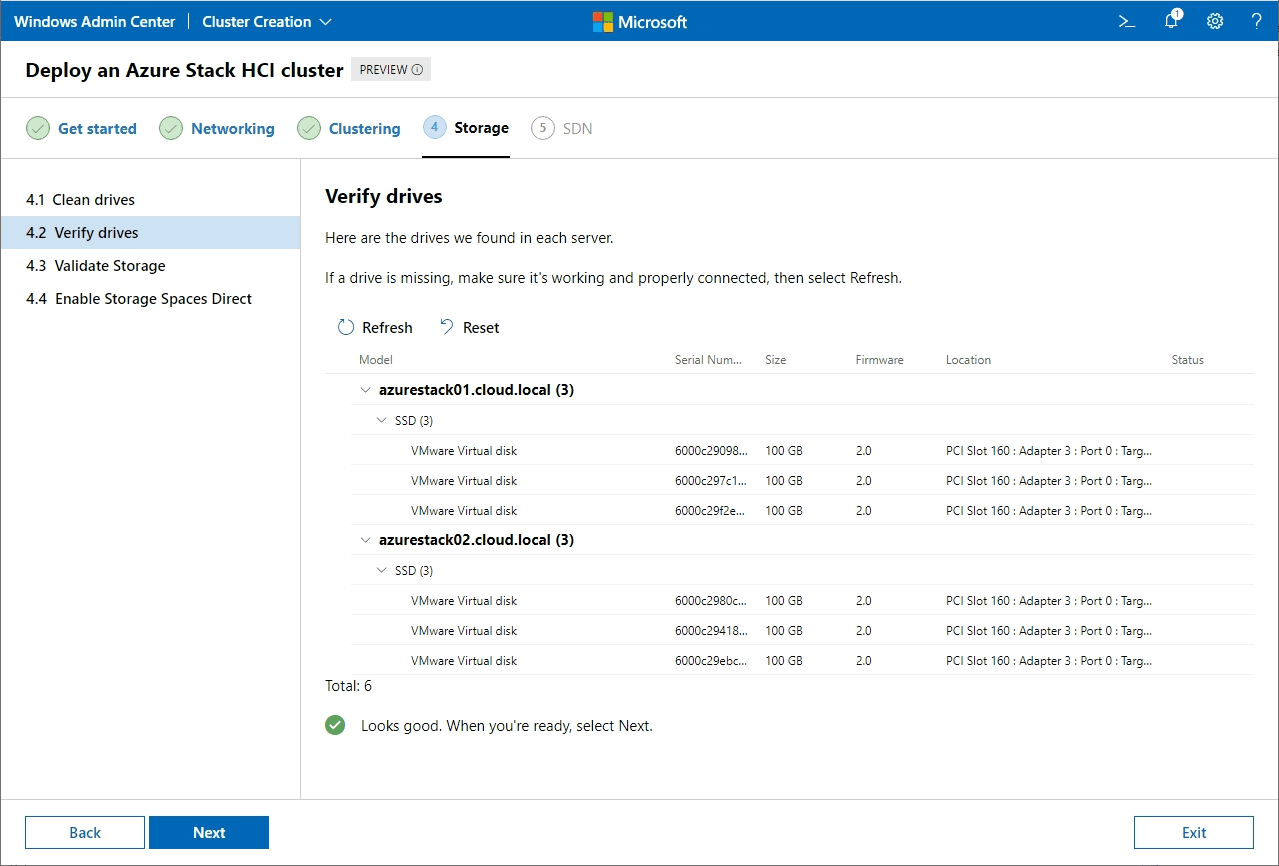 The Create Azure Stack HCI Cluster with Windows Admin Center process is straightforward and very problem-free, even in a nested virtualization environment, using VMware vSphere. The wizard went through everything without issue and enabled Storage Spaces Direct with no errors. Kudos to Microsoft for putting a lot of work into the new Azure Stack HCI operating system and the very smooth process in Windows Admin Center that makes the process extremely easy.