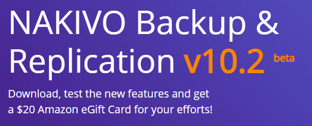 NAKIVO provides the ability with the download and testing of the Beta release to claim an Amazon eGift card as part of testing the solution. NAKIVO provides a list of things they want you to test and actions to perform in the Beta release. Afterwards, you sent your support bundle from your Beta appliance to [email protected].