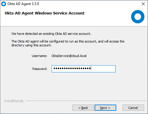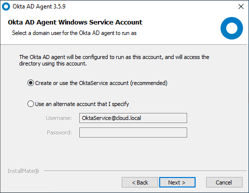 The next step involves configuring the OKTA Windows Service Account for use with the AD Agent.