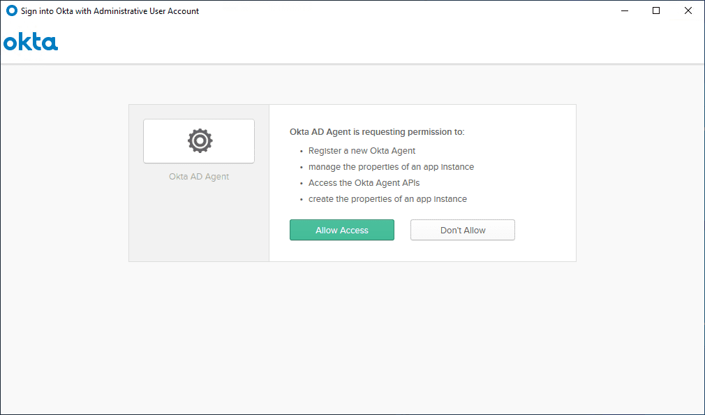 After signing in, you will need to grant permissions to the AD Agent for installation and integration with your OKTA universal directory.
