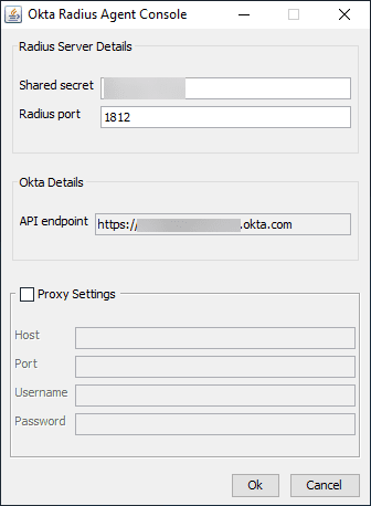- OKTA RADIUS Agent – This component provides the RADIUS server listener that your VMware Horizon UAG boxes connect to for RADIUS. You will note the RADIUS configuration on the OKTA agent is very simplistic. You can basically configure the port and the shared secret. The RADIUS server talks to the OKTA API endpoint for your OKTA subdomain.
