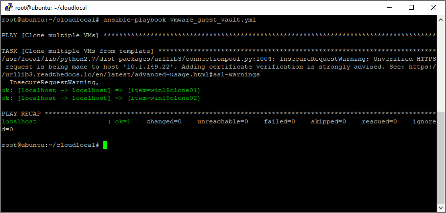 The last thing left to do is actually test the Ansible playbook which pulls vCenter Server credentials from Hashicorp Vault. As you can see below, it works.