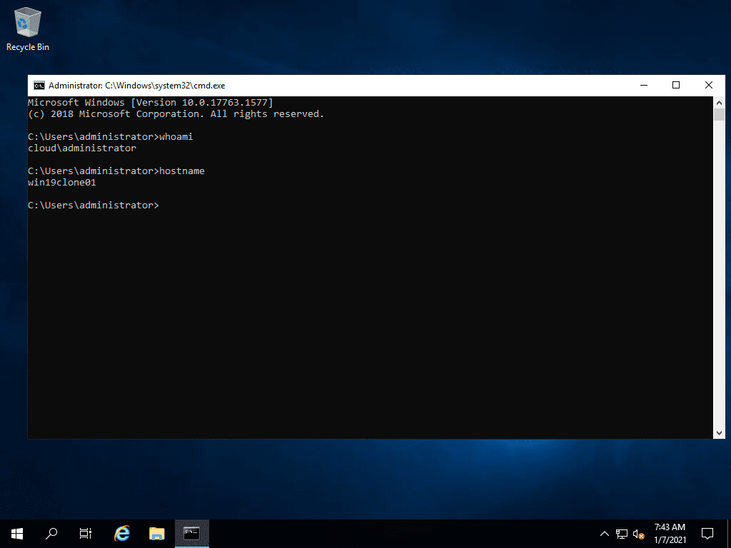 Just to confirm, I am able to login as a domain admin for the domain and the computer name is verified. This means the Windows Server 2019 guest operating system has been customized.