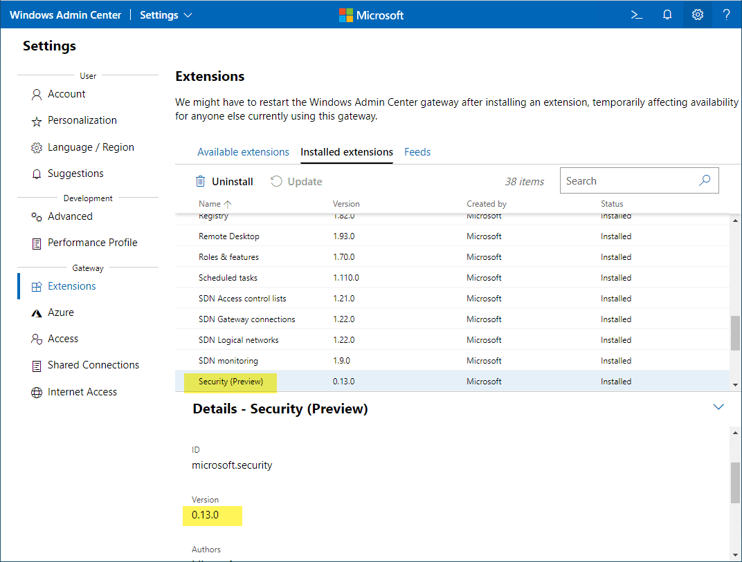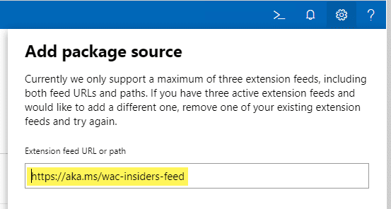 Many of the new extensions that are shown with Windows Admin Center Preview 2012 are “Insider Preview” extensions that you must enable. To do that, you have to add the following feed to your Extensions feed.