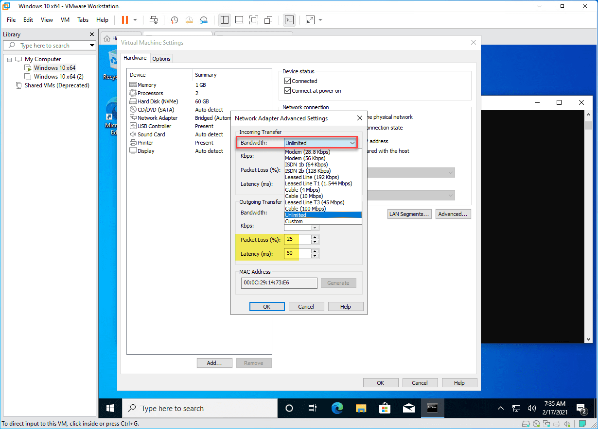 As you can tell, you can easily simulate the impact of extremely slow or otherwise flaky network connections using the Network Condition Simulation functionality found in VMware Workstation Pro.