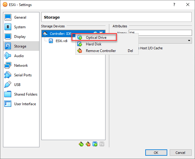 Needless to say, you will want to have hardware virtualization enabled. Let’s look at creating an ESXi VM in VirtualBox nested inside a VMware vSphere ESXi Windows 10 VM. Create a Other Linux (64-bit) VM. Under Storage Click the little Plus sign to add an optical drive. If you already have an optical drive listed, you can select to add optical media.