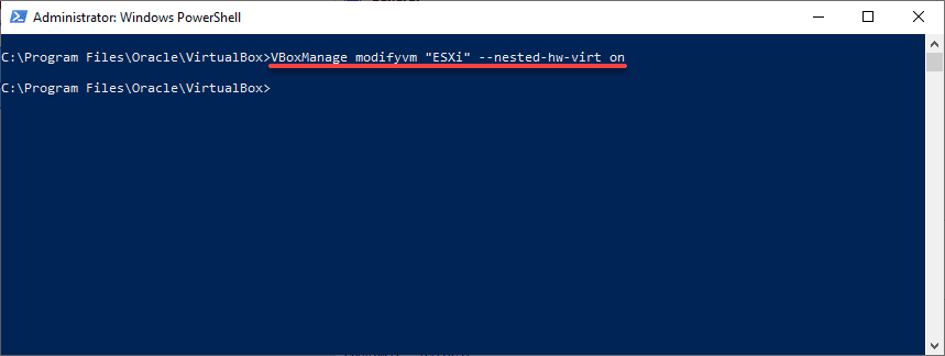 With VirtualBox, you can enable nested virtualization using the VirtualBox GUI or using the command-line. For the majority who may be using Intel processors, you will need to enable nested virtualization settings from the VirtualBox command-line.