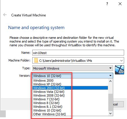 However, you will see a couple of odd things when you forget to enable hardware virtualization. When you go to create a virtual machine on a nested ESXi VirtualBox installation without the hardware virtualization flag configured, you will only see the options for 32-bit operating systems, and no Windows Server operating systems in the Create Virtual Machine.