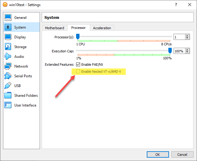 Enabling Nested Virtualization in VirtualBox