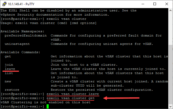 esxcli vsan cluster leave esxcli vsan cluster get