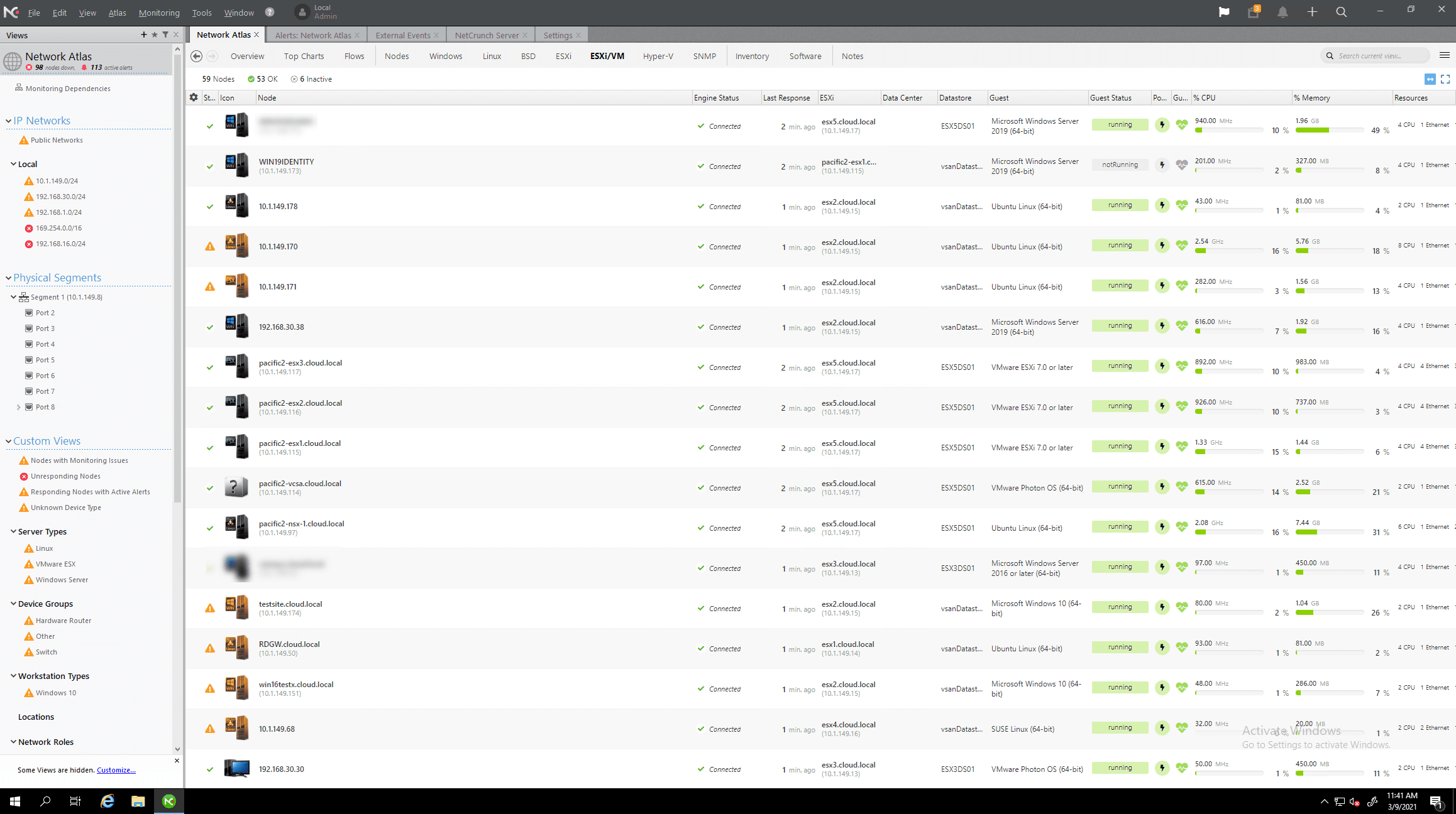 NetCrunch provides a great solution for virtualization monitoring including both VMware vSphere and Microsoft Hyper-V environments. In the lab environment, I have NetCrunch monitoring my VMware vSphere 7 environment.