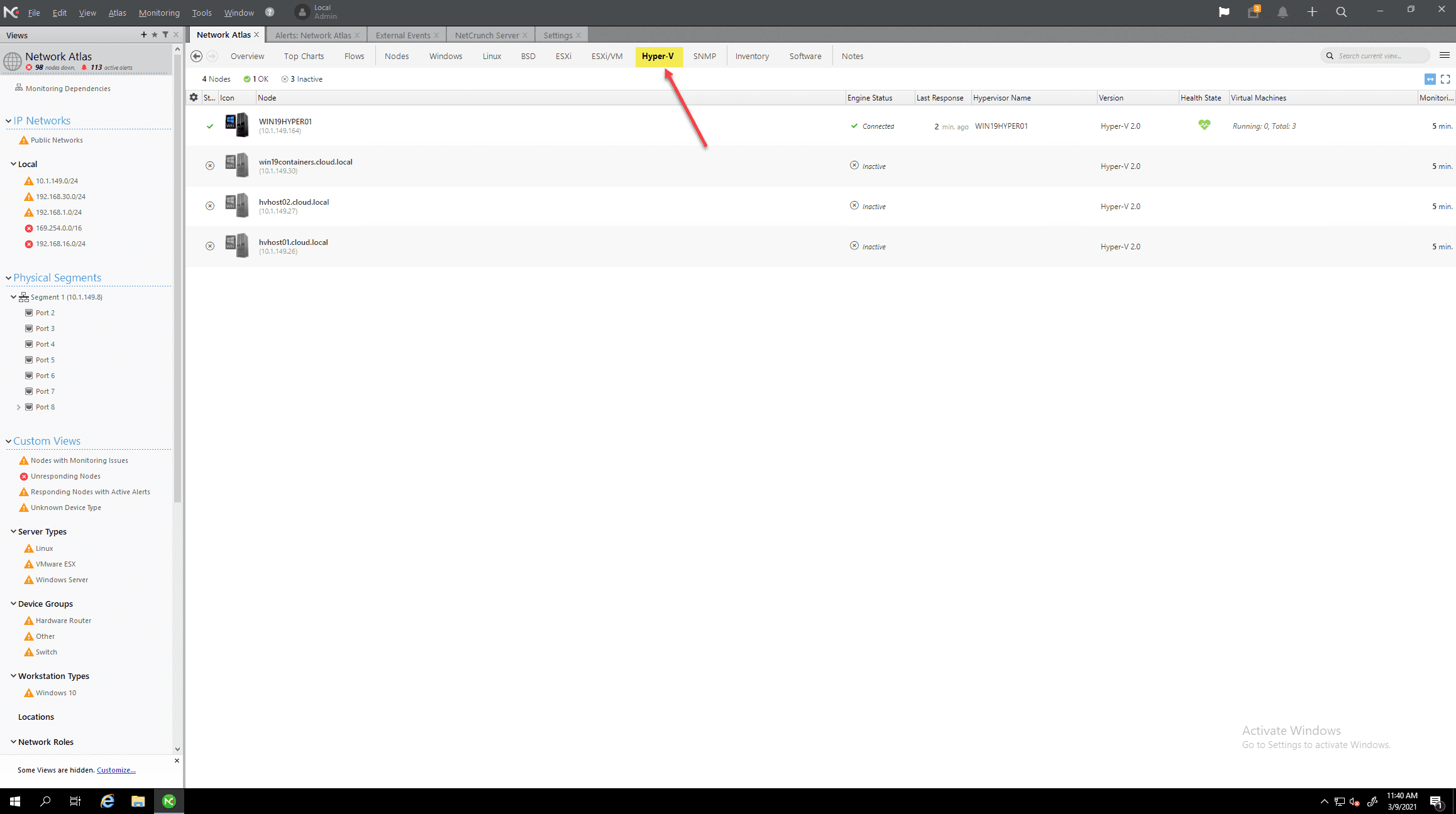 There is also a tab for Hyper-V in the environment. NetCrunch has a monitoring pack for Hyper-V.
