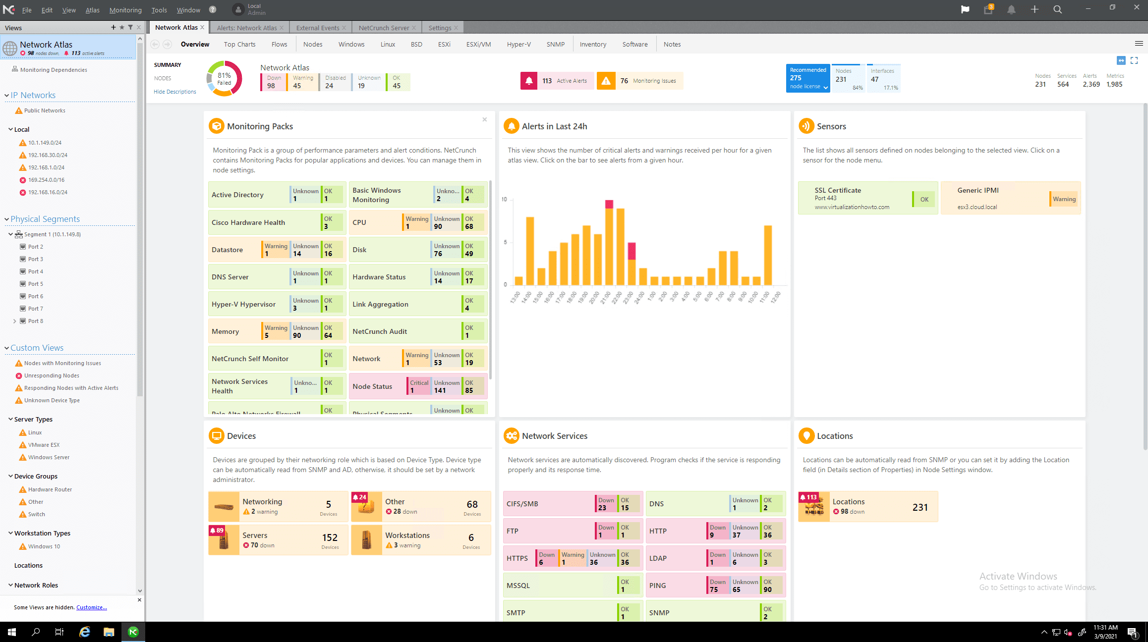The NetCrunch solution provides you with a monitoring atlas that gives you a global overview of your environment in a single pane of glass. I like the use of color and categorization in NetCrunch Network Atlas. In a single dashboard, you have a view of the monitoring packs, devices, alerts, and other metrics.