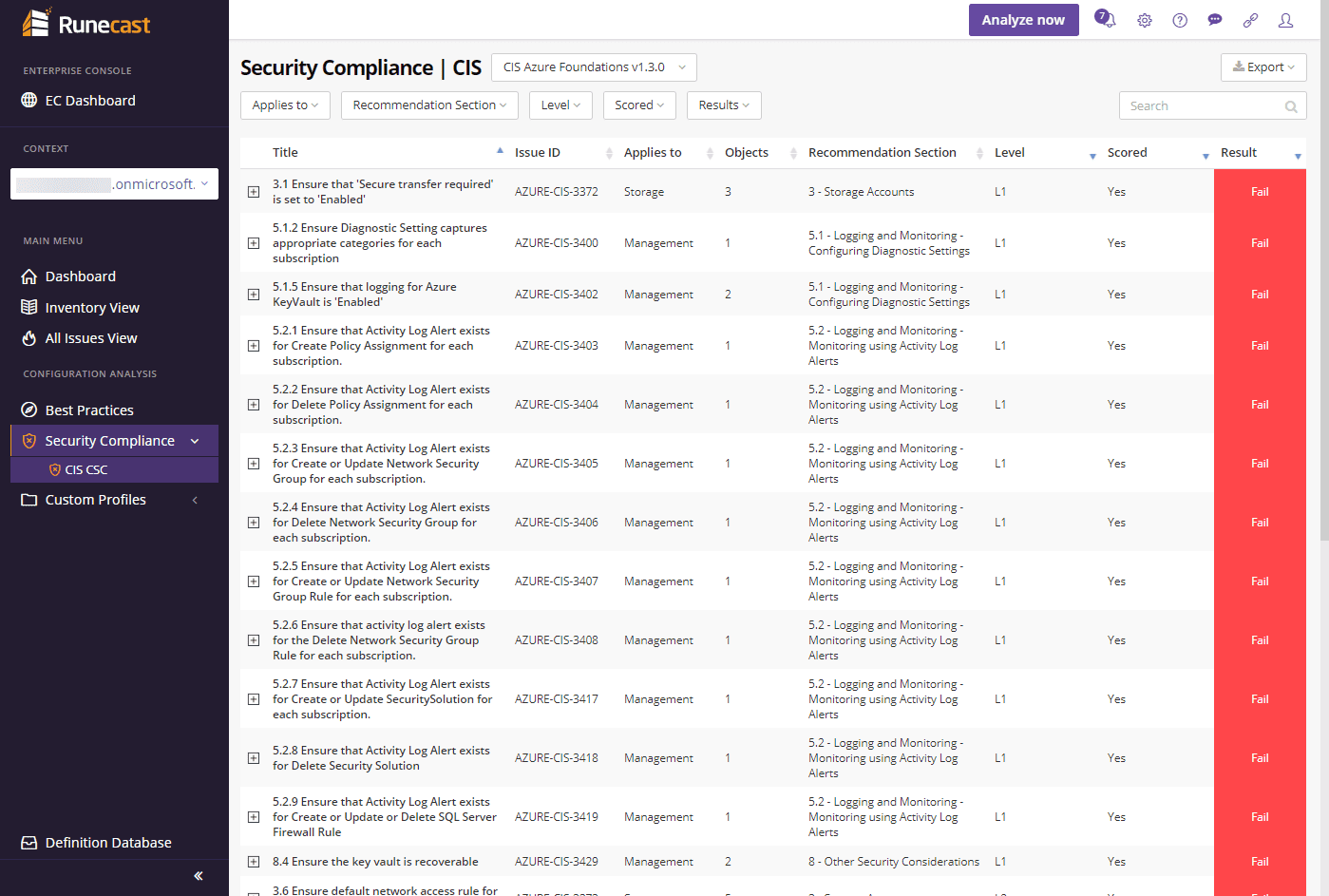 Currently, Runecast Analyzer 5.0 only supports CIS CSC security compliance checks. No doubt, Runecast will be adding additional checks for Microsoft Azure in future releases.