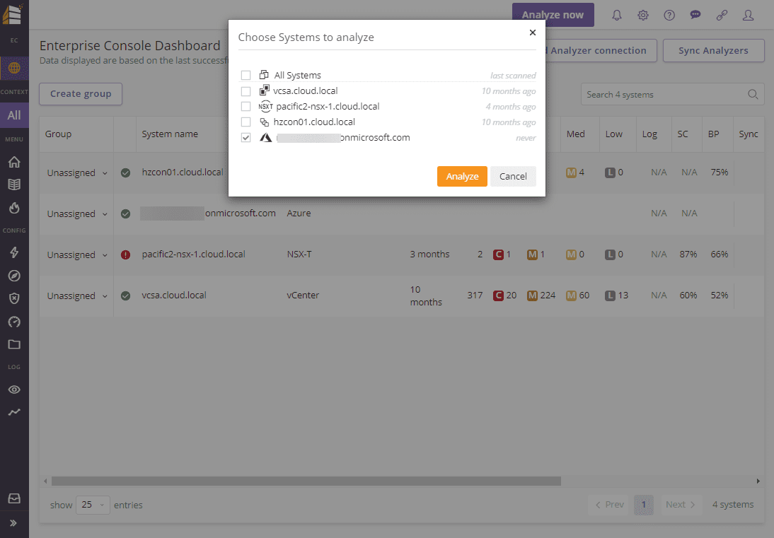 After adding the Microsoft Azure environment, you can click the Analyzer now button and select to scan your Azure environment.