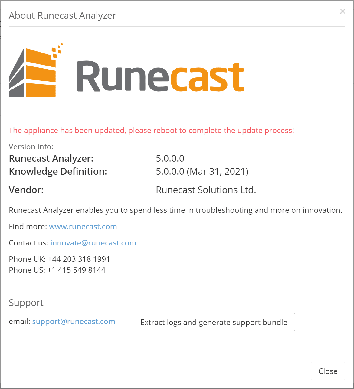 One of the great things about Runecast Analyzer is how well it performs self-maintenance operations such as automatic upgrades. As soon as I logged into my Runecast Analyzer appliance, I had a note that the appliance had been upgraded and I needed to reboot. A quick reboot later and I was up and running with Runecast Analyzer 5.0 with the new Microsoft Azure scan functionality.