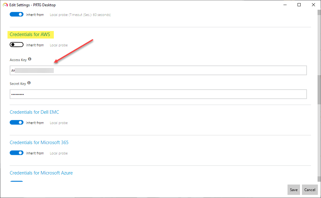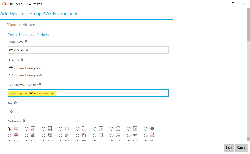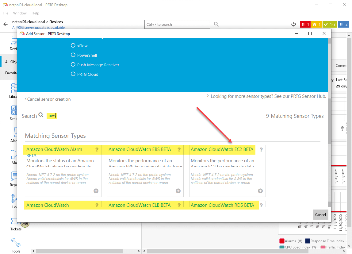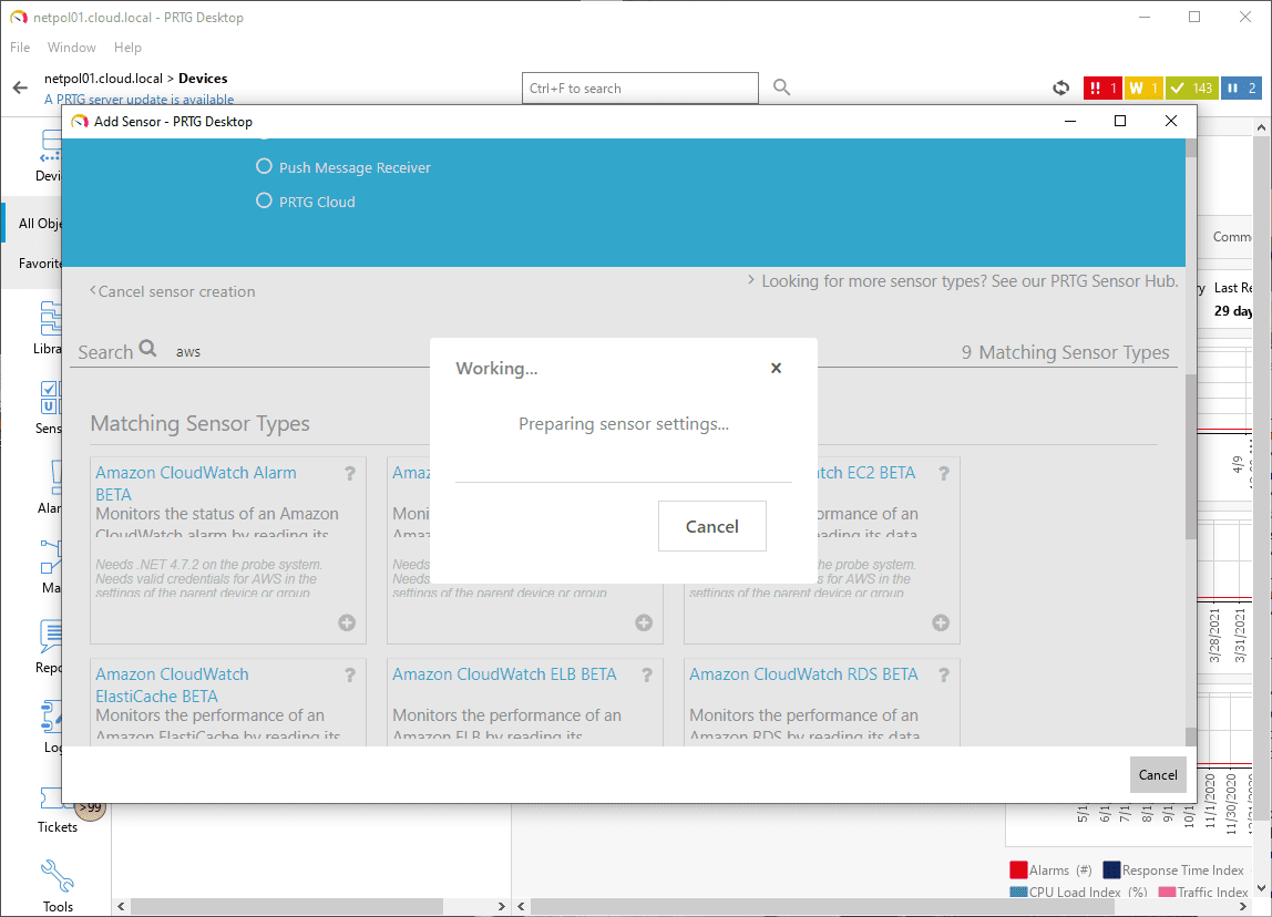 - Adding a new PRTG Device Sensor for CloudWatch monitoring