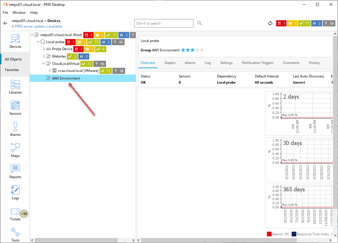 4. Adding a new PRTG Device Sensor for CloudWatch monitoring