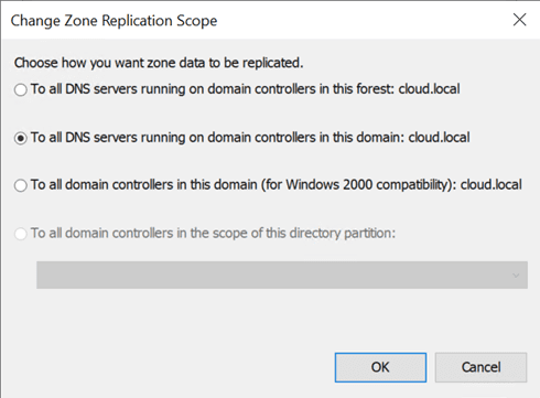 When you click the Change button, you can choose how you want zone data to be replicated. The options are: