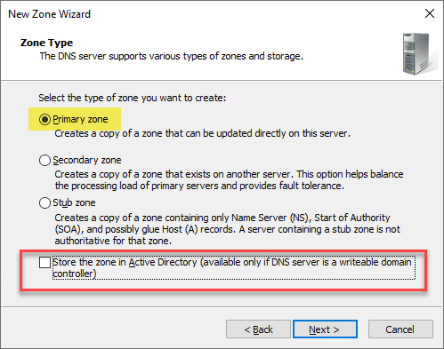 You may wonder – why would you ever use just a Standard Primary DNS zone as we had in the early days with Windows Server when you can use Active Directory integrated zones now? I have seen use cases where businesses wanted to have a particular zone only reside in a particular region or site. So, they didn’t want those zones replicated around to different domain controllers. Additionally, if you want to have different records and IP addresses for different regions for specific hostnames, this can be accomplished by running Standard DNS zones and only having those reside on a particular DNS server and not replicated to other domain controllers.