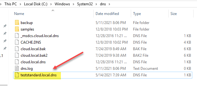 Name the DNS zone file exactly as the DNS zone you have backed up.