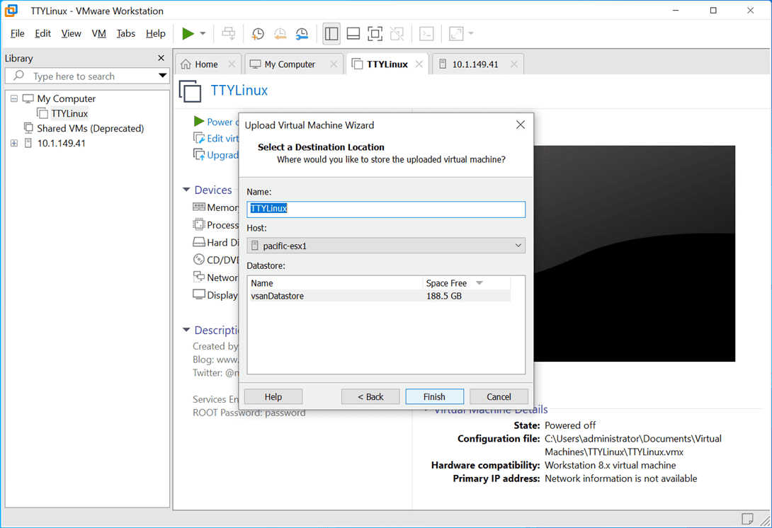 By using the Upload process, you can easily upload an existing virtual machine from VMware Workstation to an ESXi server. This process converts the disk format and performs the process automatically to copy the VM to the ESXi host. The one caveat is the VM has to be powered off in VMware Workstation. However, for most home lab environments or other scenarios, this won’t matter too much.