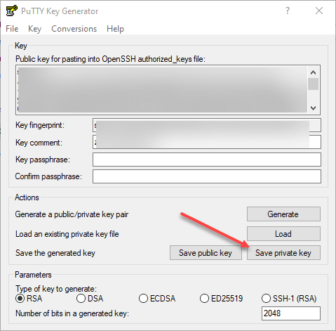 If you want to use Putty to connect to your OpenSSH server running in Windows Server 2019, you need to generate a .ppk file that is the Putty-formatted version of the private key. Openย Putty Key Generatorย and open your current private key (id_rsa) and then choose toย Save private key. This will save the private key fingerprint.