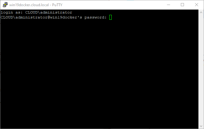 At this point, you should be able to connect to the OpenSSH server hostname using a Putty session or terminal tool of your choice. You should even be able to use something like WinSCP to SSH into your Windows box for file management. By default, password authentication is allowed. Enter the user account for authentication and password. Below, I am using a domain account to login to the IP address or hostname of the endpoint.