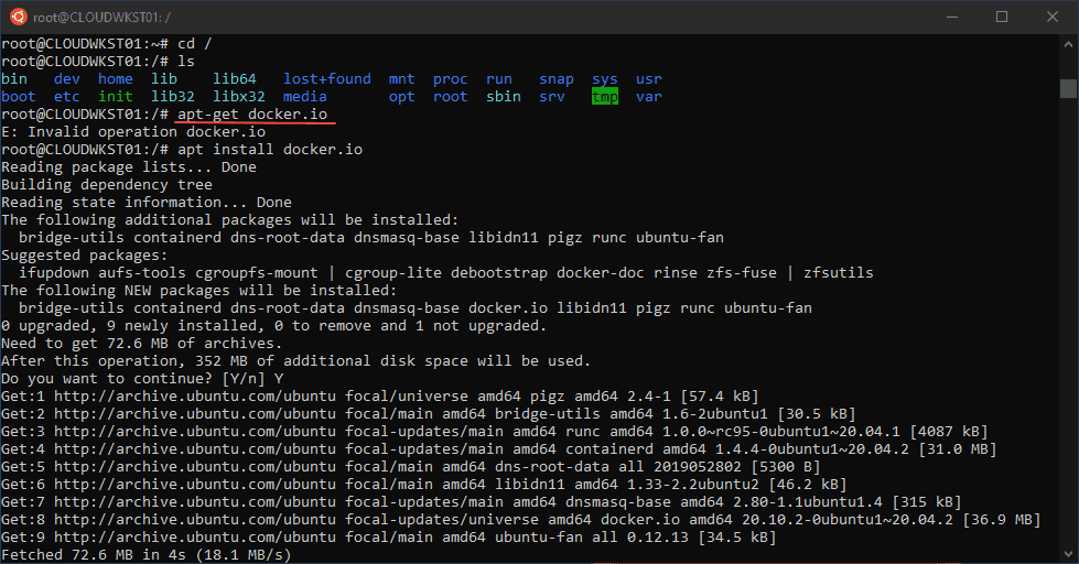 Now for the part we have been waiting for, installing Docker. Just like any Ubuntu distribution, you can install Docker from the command line.