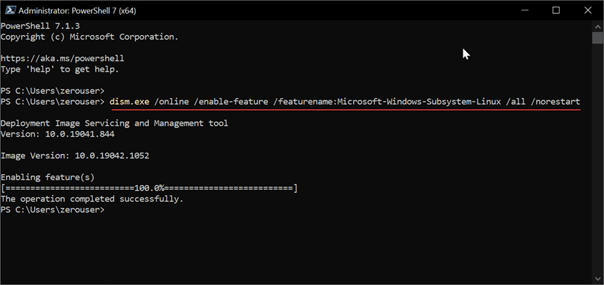 dism.exe /online /enable-feature /featurename:Microsoft-Windows-Subsystem-Linux /all /norestart