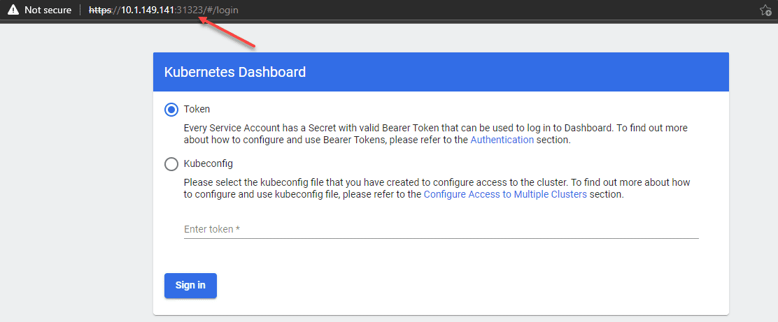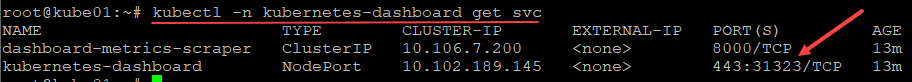 Setup Nodeport networking by editing the kubernetes-dashboard svc. To do that, run the command:
