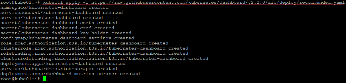 kubectl apply -f https://raw.githubusercontent.com/kubernetes/dashboard/v2.2.0/aio/deploy/recommended.yaml