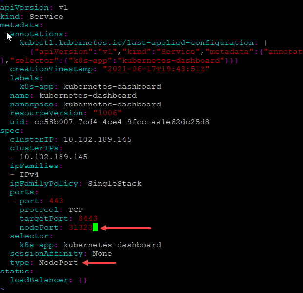 kubectl -n kubernetes-dashboard edit svc kubernetes-dashboard