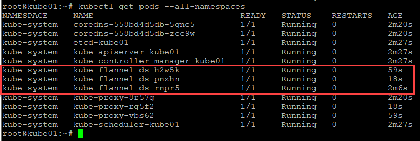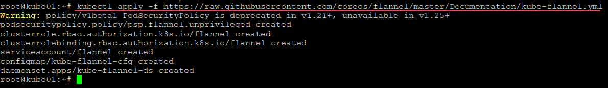 kubectl apply -f https://raw.githubusercontent.com/coreos/flannel/master/Documentation/kube-flannel.yml
