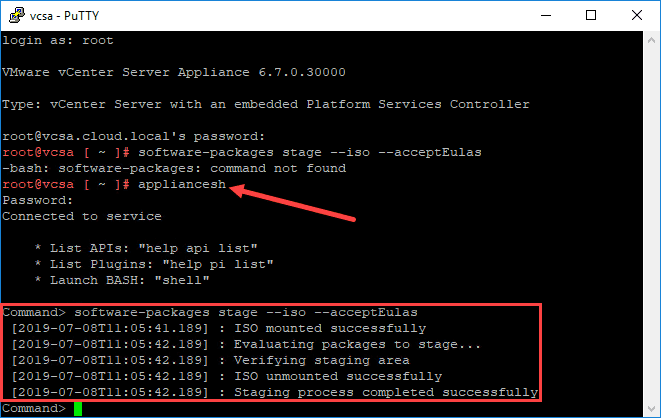 I have written about this method before, so I won’t go through all of the steps to do this. It involves manually pulling down the VCSA patch ISO from the online VMware patch repository, mounting the ISO to the VCSA appliance, and then applying the patch using some command line statements from an SSH shell. This is a great method that comes in handy especially when your vCenter Server does not have direct Internet connectivity.