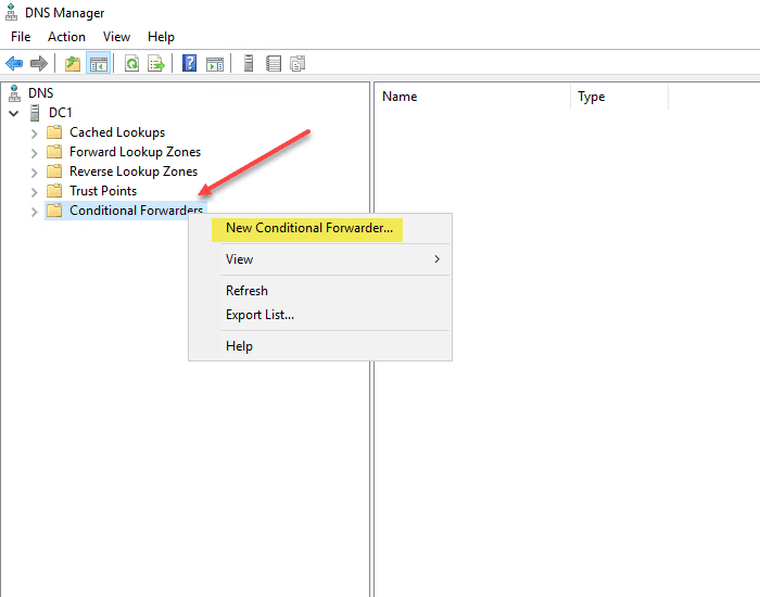 The DNS conditional forwarder is a special DNS forwarder that allows forwarding requests for name resolution for a specific domain name to a specific server. DNS servers in general have forwarders they typically forward all requests for names it does not hold locally. You can think of these forwarders like the “default gateway” for DNS resolution.