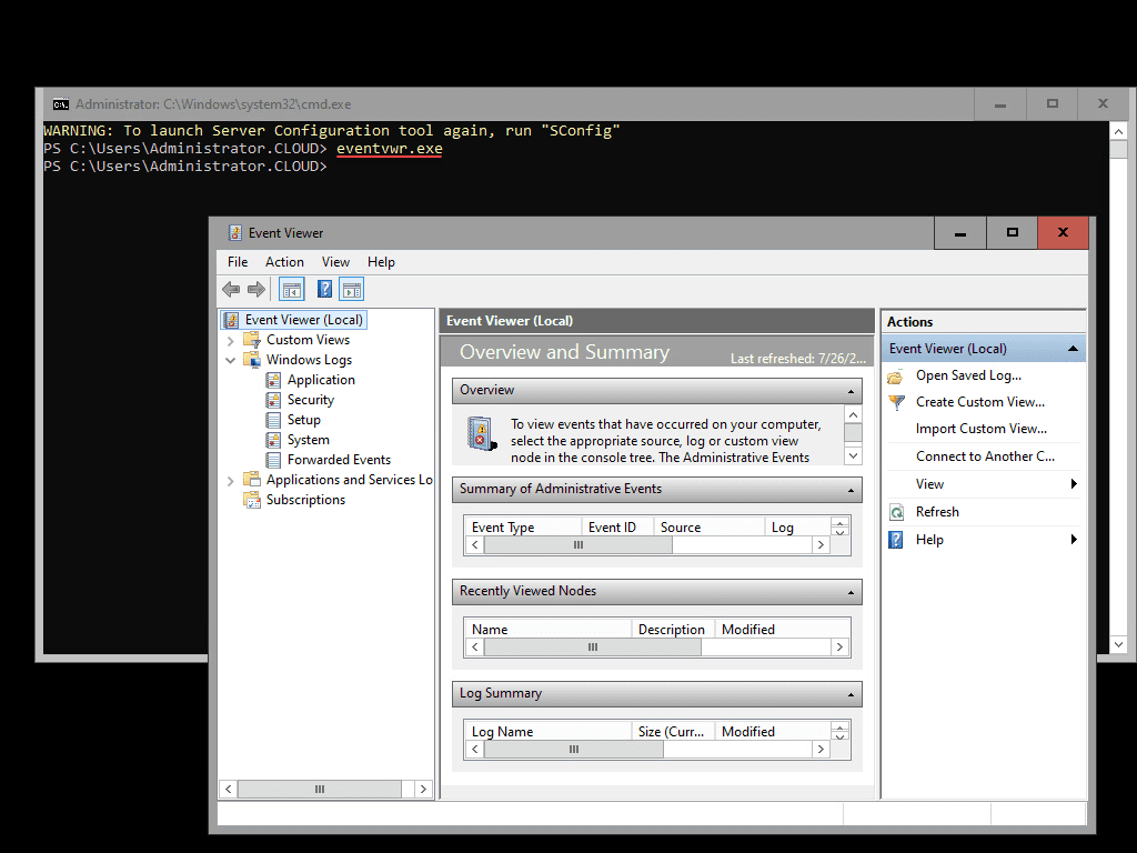 While Windows Admin Center provides a robust way to have centralized administration of your Windows Server 2022 Core operating systems, having the ability to have local management tools available can be extremely helpful in case the server is isolated or network connectivity is down. Having the ability to locally look at Event Viewer as an example, is extremely helpful if you are troubleshooting an issue.