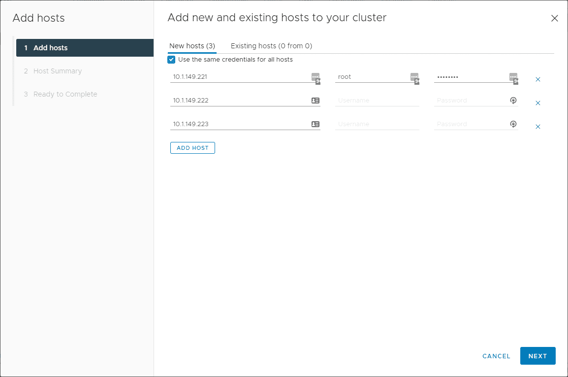 Hosts to be added to your vSphere Cluster. The IPs reflected below are housed in my VMware Workstation environment.