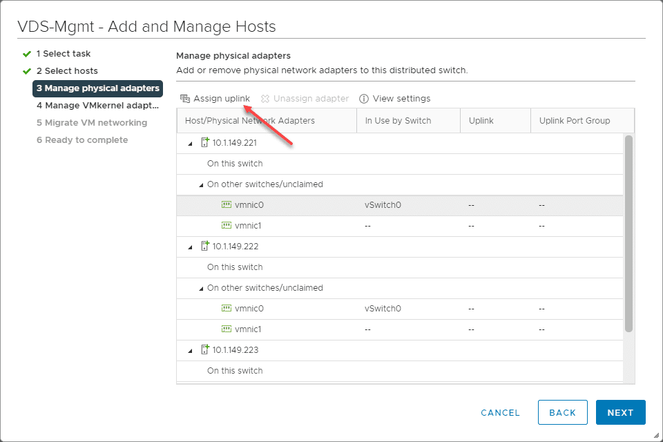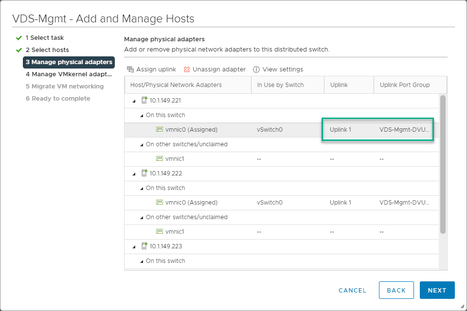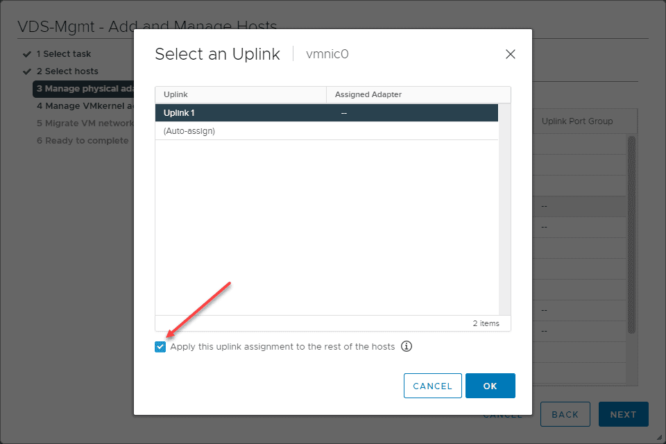 Choose Uplink1 and then Apply this uplink assignment to the rest of the hosts.