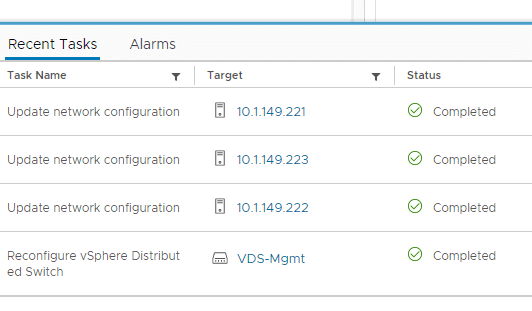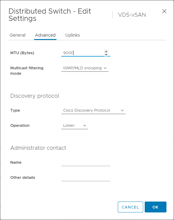 If you noticed above, I forgot to change the MTU of the vDS for vSAN to 9000. I went back and did this. You can do this either when you initially create it or after the fact.