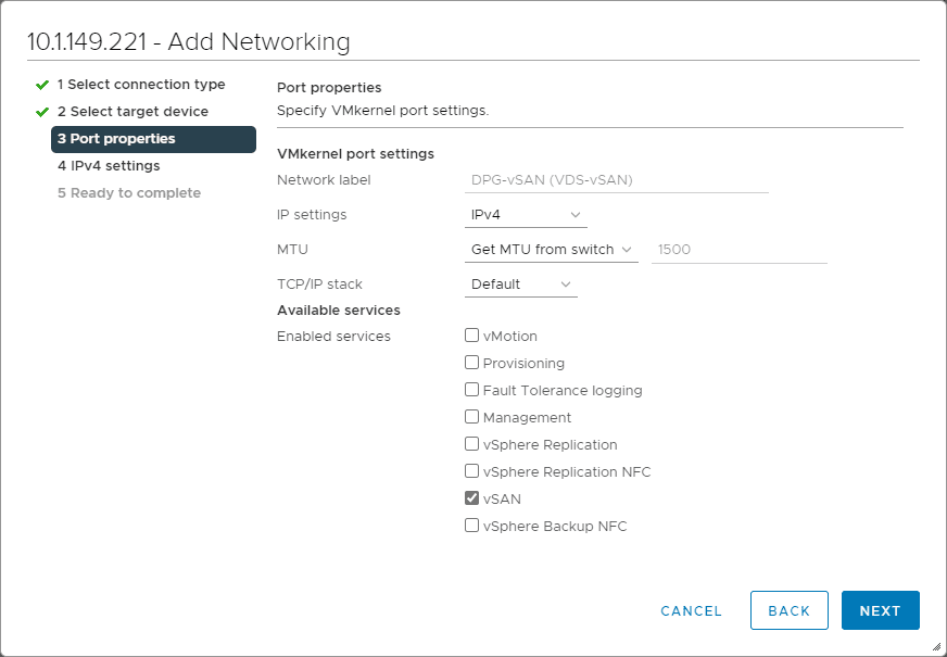 Make sure to choose vSAN on the Port Properties > Available Services.